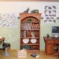 Meubles en balsa et utilisation de fèves pour les dinosaures.